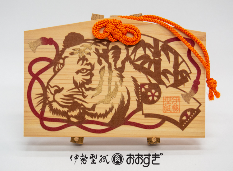 寅年の絵馬飾り:寅-2(紐:オレンジ)