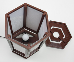 六角柱の六つの面に伊勢型紙をあしらった卓上ライトです。