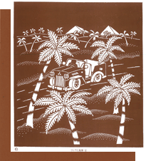 従来の図案入り型紙と比べると、出来上がりがイメージしやすく、また渋紙自体に黒く印刷してありませんので、彫刻の際に輪郭線から多少ズレても出来上がりに支障がありません。ただ、2枚を重ねて一緒に彫刻するため、慣れないと彫り難く感じられます。→ 図案入り型紙と型紙付き図案の比較