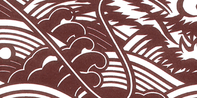 従来の図案入り型紙と比べると、出来上がりがイメージしやすく、また渋紙自体に黒く印刷してありませんので、彫刻の際に輪郭線から多少ズレても出来上がりに支障がありません。ただ、2枚を重ねて一緒に彫刻するため、慣れないと彫り難く感じられます。→ 図案入り型紙と型紙付き図案の比較