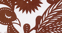 従来の図案入り型紙と比べると、出来上がりがイメージしやすく、また渋紙自体に黒く印刷してありませんので、彫刻の際に輪郭線から多少ズレても出来上がりに支障がありません。ただ、2枚を重ねて一緒に彫刻するため、慣れないと彫り難く感じられます。→ 図案入り型紙と型紙付き図案の比較