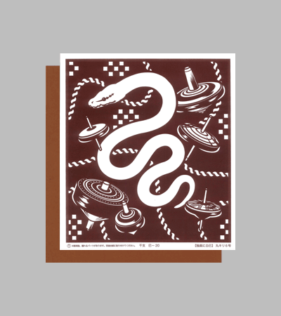 干支の型紙付き図案:巳-20【独楽に白巳】