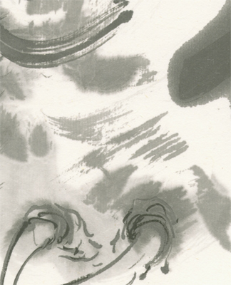 ・松煙墨は粒子が粗く不均一なため様々な味わいが出るのが特徴で、淡墨の滲みが独特です。