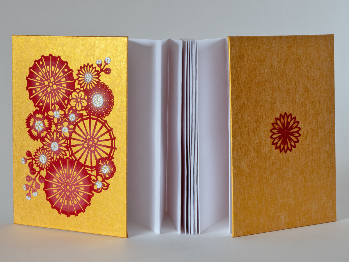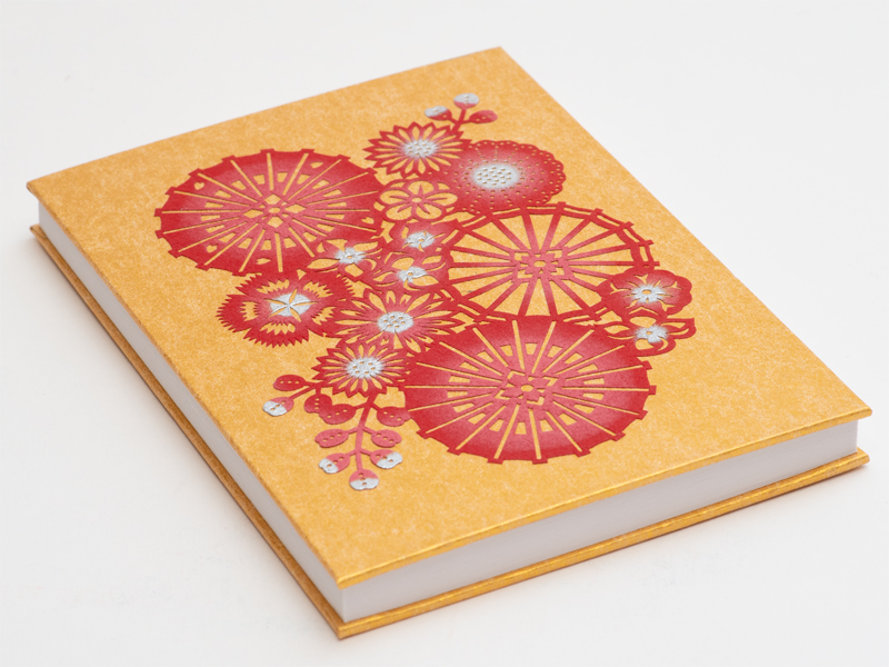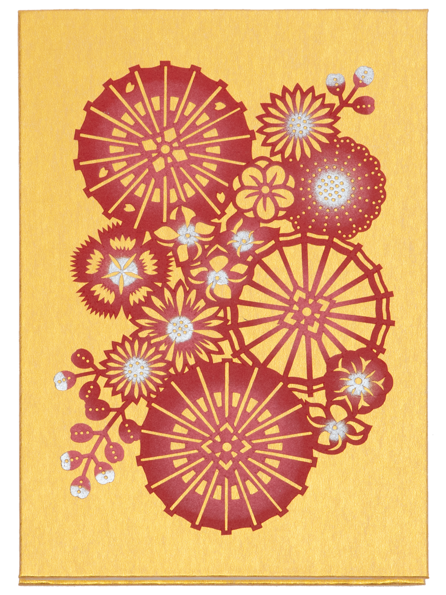 商品名:伊勢型紙御朱印帳「和傘に花尽くし」(金)