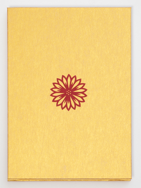 手彫りの伊勢型紙「和傘に花尽くし」を金潜紙(きんせんし)の表紙にあしらった御朱印帳です。