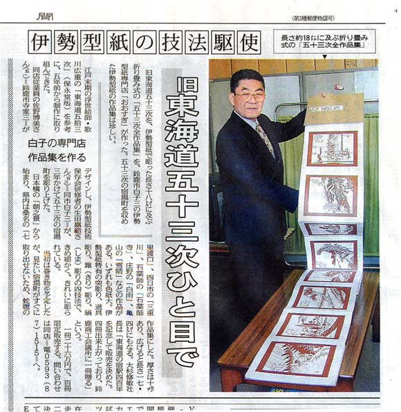 2001年1月16日の中日新聞より…折本「東海道五十三次」
